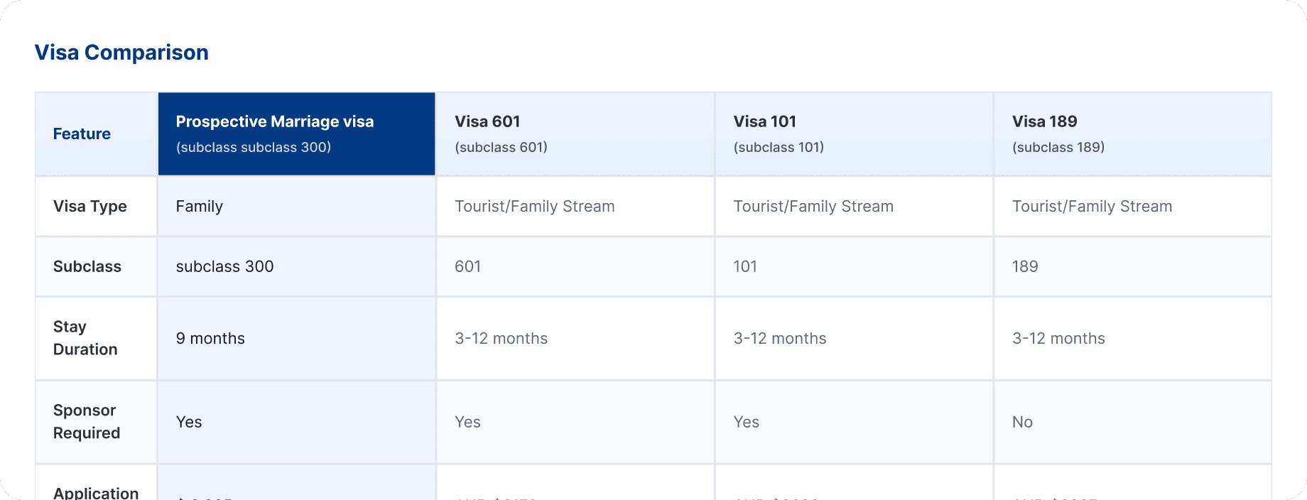 Visa Comparison